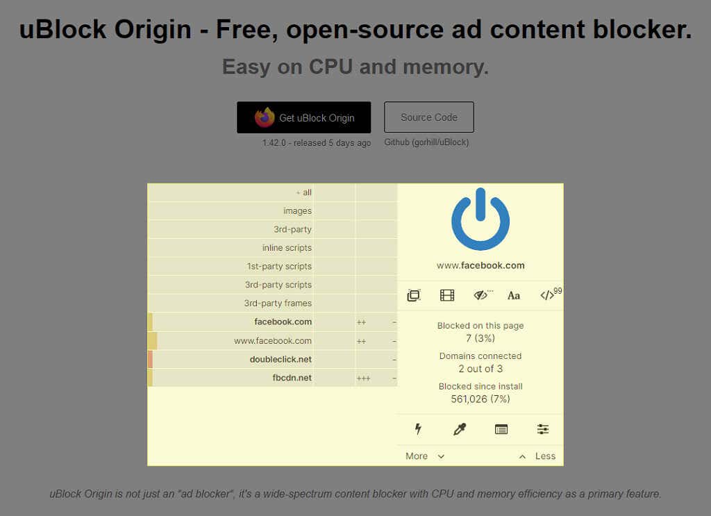 The developers call it a “wide-spectrum content blocker” rather than simply an ad blocker, and for a good reason. uBlock Origin is one of the most advanced and versatile options for increasing your privacy online with minimal cost to your CPU or memory usage.