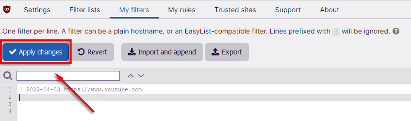 - Open the uBO dashboard.