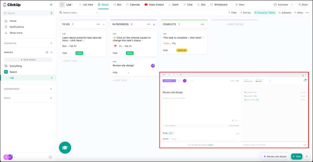 ClickUp is a service that offers many features in addition to its Kanban boards. Take advantage of Gantt charts, dashboards, mind maps, forms, and to-do lists.