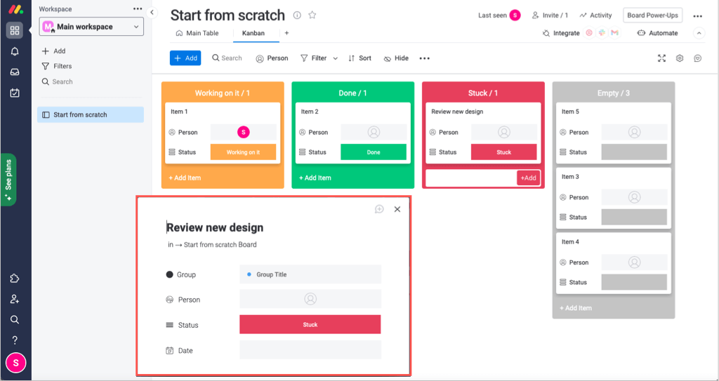 Pricing: Free for up to two seats and then paid subscription plans for additional features, including unlimited items, increased file storage, dashboard and calendar views, and more.