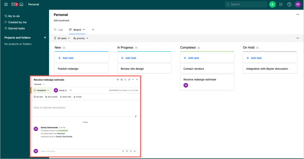 You’ll also like the convenience of accessing your to-do list, starred tasks, and items created by you right from the left-hand navigation.