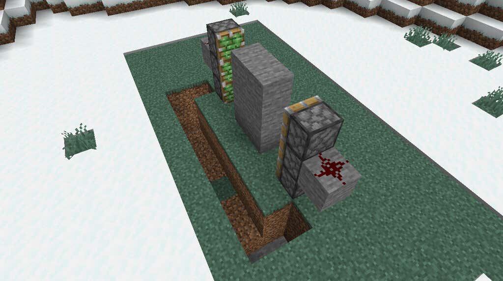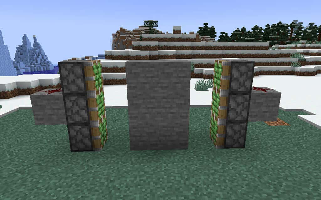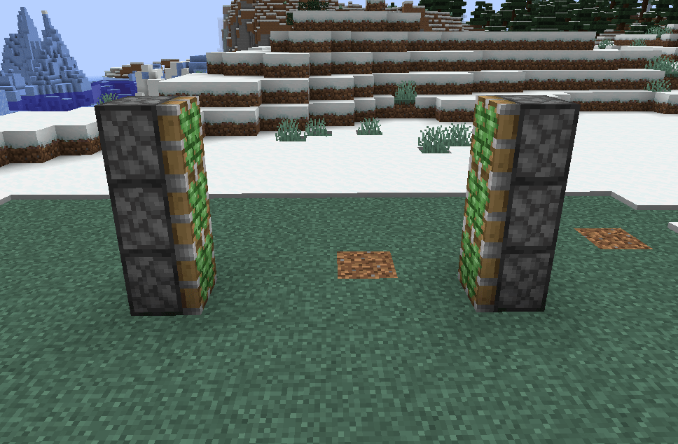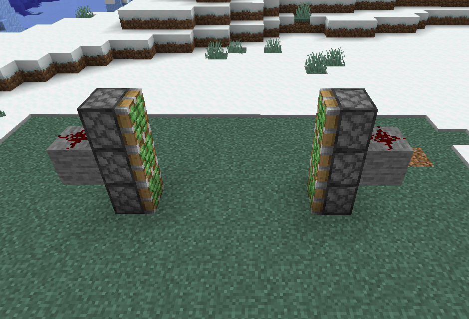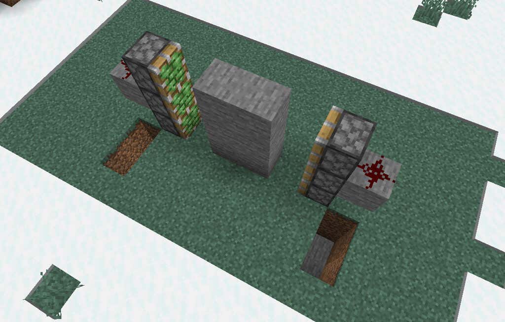 - Create two towers of building blocks in the middle of the Sticky Pistons.