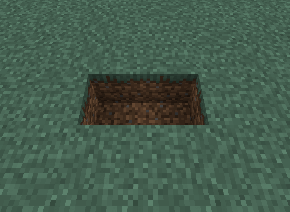 - Dig a two-block deep row to connect the two holes. The row should be one block away from the walls you made previously, forming a U shape.