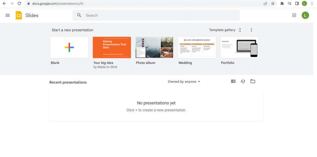 - The interface is similar to Google Docs, with templates on top to get you started and existing projects listed below. Open an existing presentation (or create a new one).