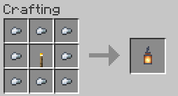 The ingredients are pretty straightforward – a torch in the center and 8 iron nuggets placed around it. Use a soul torch instead of a regular torch and you will get a soul lantern.