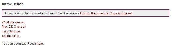 Instead, of using Notepad, download a specific text editor called Poedit. Jump to the downloads page and proceed to download the according version for your operating system. Note that the software is available for Windows, Mac and Linux. The software is also open-source, so there is no charge.
