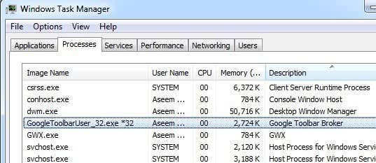 It’s also worth noting that the newer version of the Google Toolbar will show up as the GoogleToolbarUser_32.exe process. That’s a pretty self-explanatory process name!