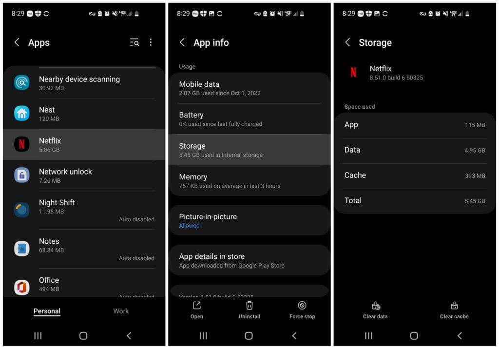 1. Go to Settings > Apps (or Apps & notifications) > and select Netflix.