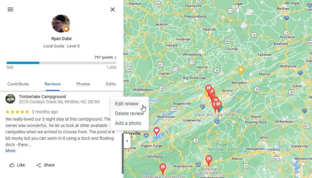 - Select Edit review from the pop-up menu. Or, if you just want to add photos or delete the review entirely, you can select one of those options instead.