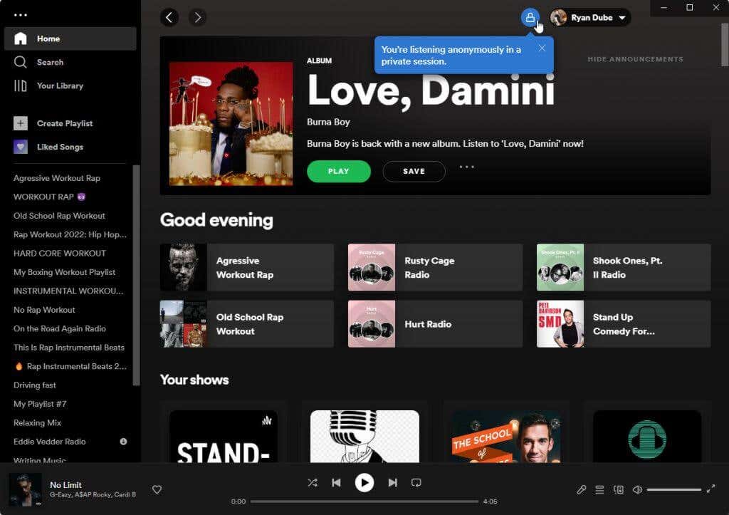 Whatever your reason for doing it, both the desktop and mobile versions of the Spotify app let you enable a private session.
