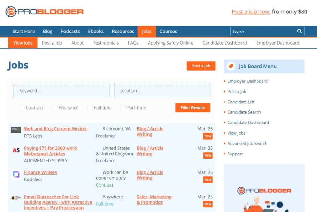 If you are a good writer, you can certainly make money by writing for websites. The Problogger Job Board is a great place to start looking for these types of opportunities. However, you can even find website owners hiring on places like Craigslist or even Indeed and similar job websites.