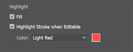 If Highlight Stroke when Editable is checked, parts of a path that can be edited will be stroked in the color selected. You must also have In Merge Mode, Clicking Stroke Splits the Path selected above. Otherwise, the path segments won’t be editable, and, therefore, won’t be highlighted.