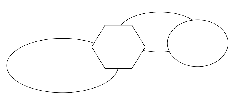 Imagine you have three overlapping ellipses with a gap in the middle.