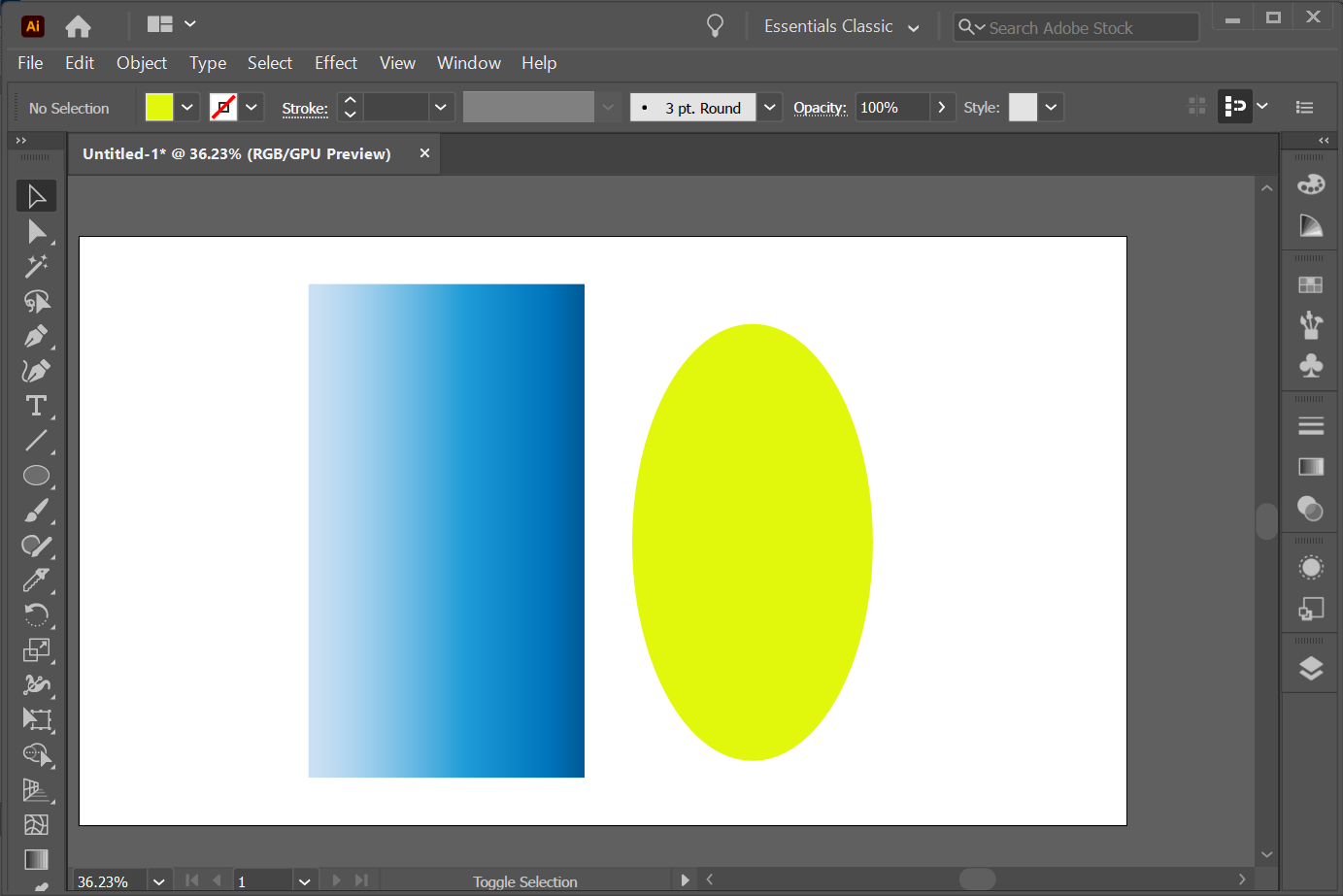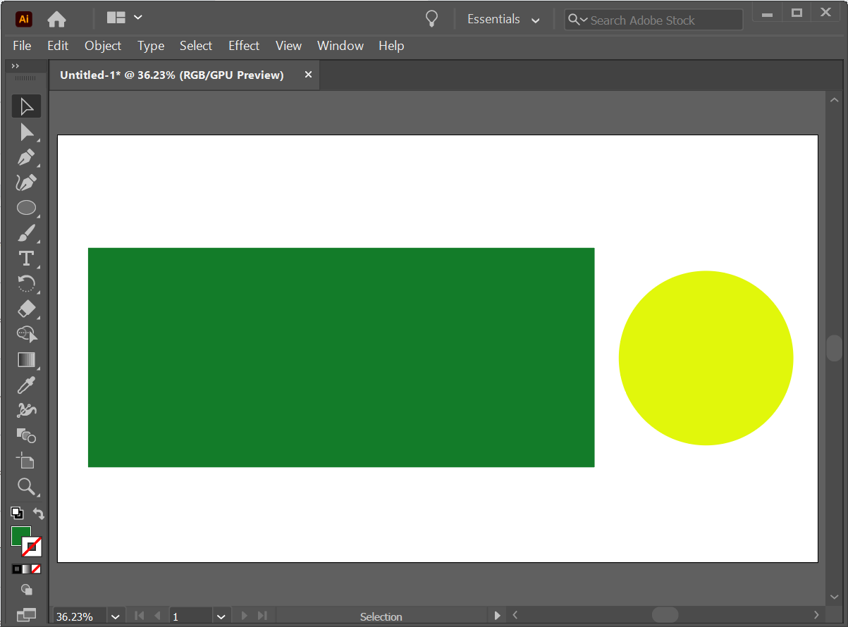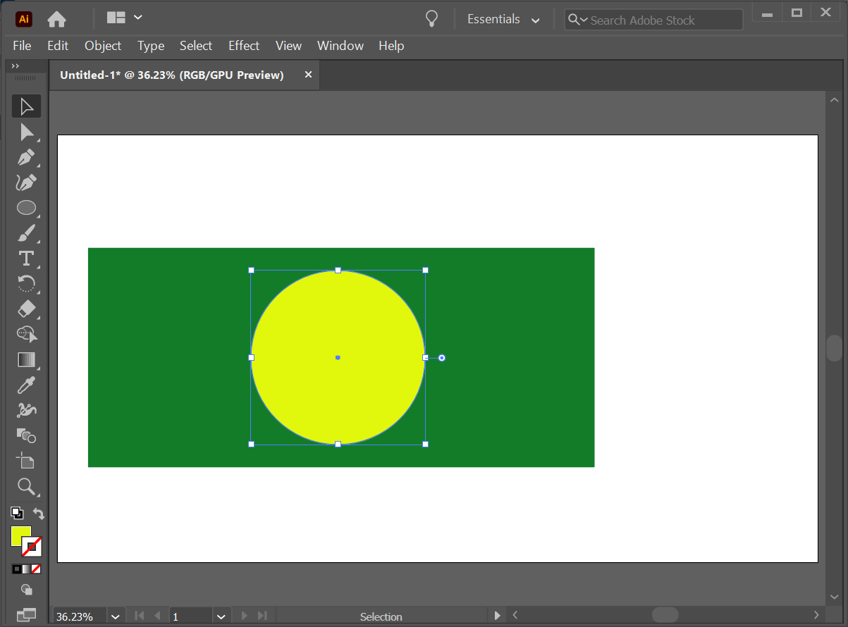 - Use the Selection tool to move the circle on top of the rectangle. Note: To quickly activate the Selection tool, use the keyboard shortcut V.