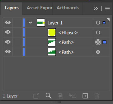 - In the Layers panel, select one of the layers you created by cutting the shape with the Knife.