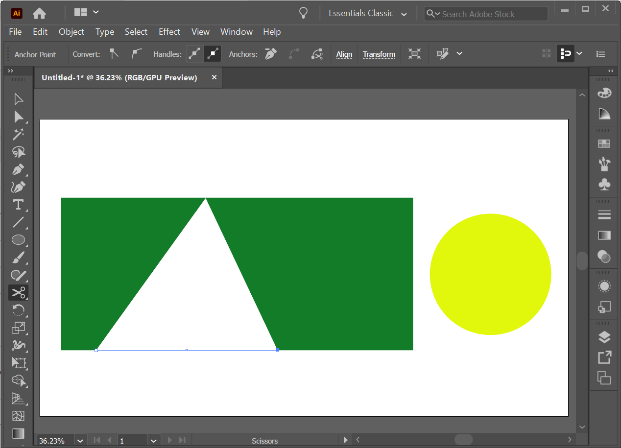 - With the Scissors tool selected, click on the edge of a shape to create an anchor point.