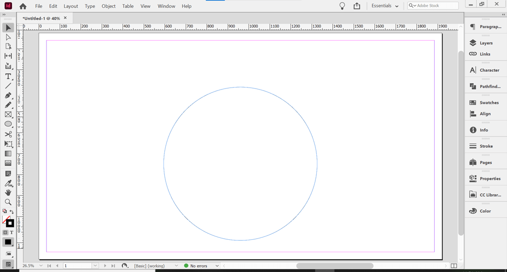 InDesign has several tools you can use to create a path. To create a curved path, you could use the Ellipse Tool or the Pen Tool. While you can use any shape tool to create a path, in this example, we’ll use the Ellipse Tool to create a perfect circle.