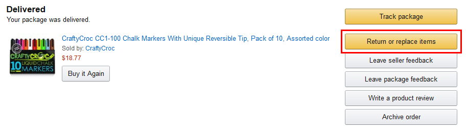 4. Find the order you want to return and select Return or replace Item. You can find this option right next to the selected order.