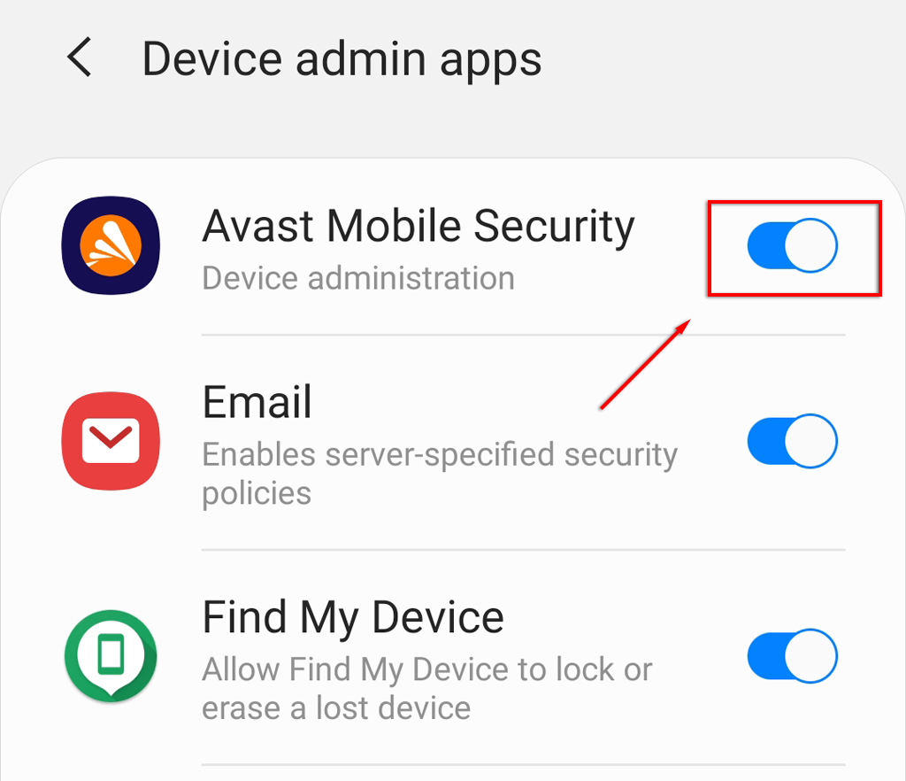 - Find the app you want to remove and tap the slider to revoke administrator privileges. You may have to tap the app and select Deactivate on some models.