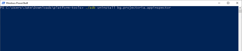 - In either window, type ./adb uninstall, press Spacebar, enter the package name, then press Enter.