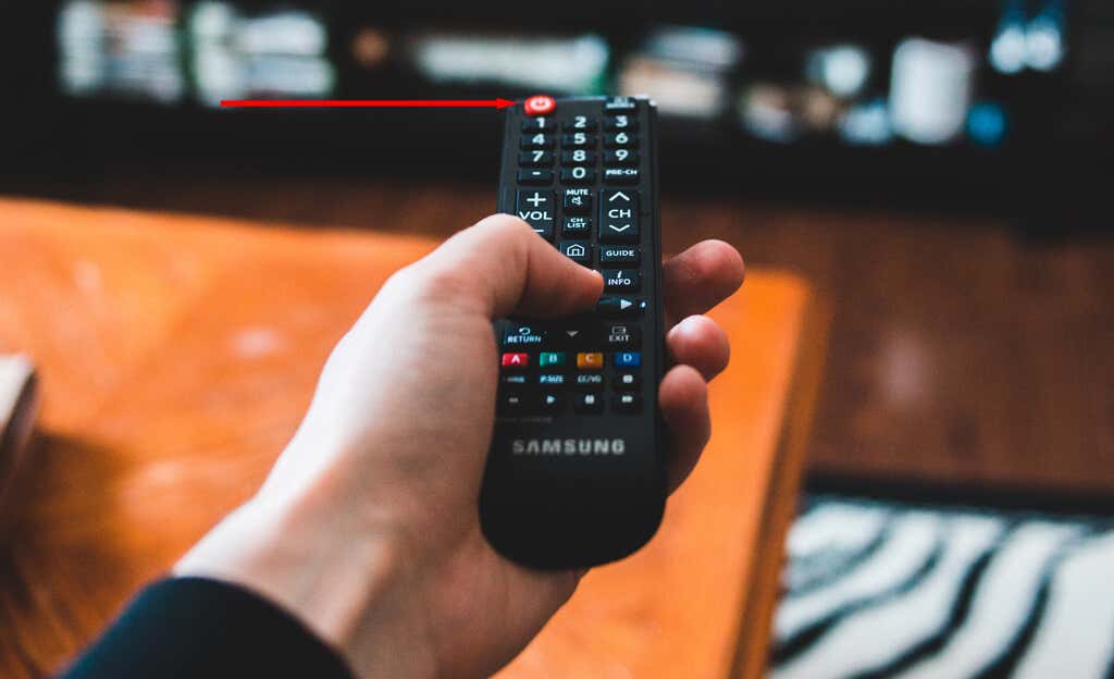 - Press the power button on the Samsung TV: Find the external power button on the TV itself. It’s usually along the bezel, somewhere near the front right-hand corner of the screen. Once your TV turns off, wait a few seconds then turn it back on.