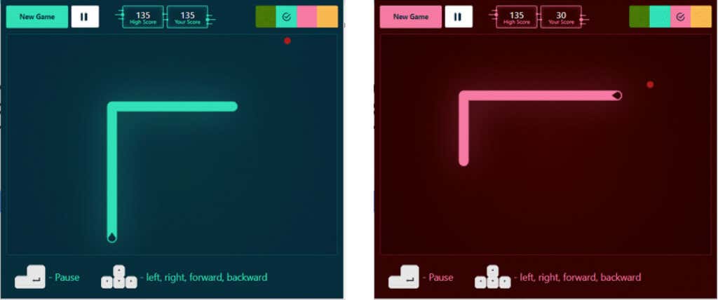 Pick from four colors for the board, use your arrow keys to move, and pause the game at any time.