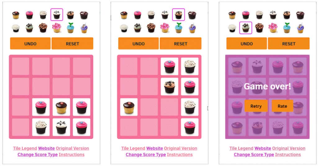 Use your arrow keys to slide the cupcakes left, right, up, or down to combine the same goodies and create new ones. You can also undo a move, reset the board, and save your progress automatically.