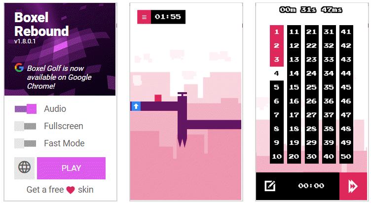 If you’re a fan of platformers, give Boxel Rebound for Chrome a go. Jump over obstacles, drop down to avoid others, and make your way through 50 challenging levels.