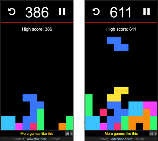 Try to fill each row with the various shapes so you can clear the row and score. You can pause the game at any time and restart it to score even higher next time.