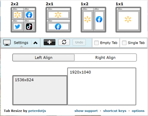 Another option for viewing your tabs differently is Tab Resize. You can see open tabs in a grid, columns, or rows. This is a convenient option for split-screen layouts for comparisons.