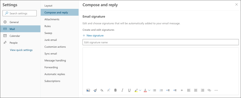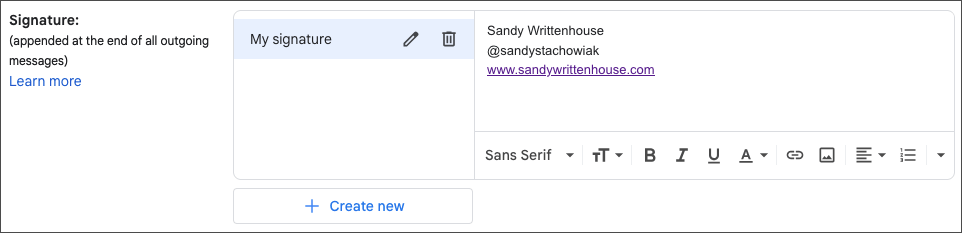 To set up additional signatures, follow Steps 1 through 3 above. Then, select New signature and follow the remaining steps.