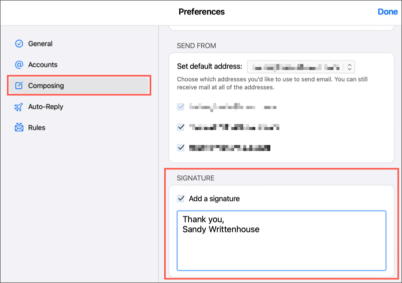 Your new signature is automatically added to all emails you send from iCloud Mail on the web.