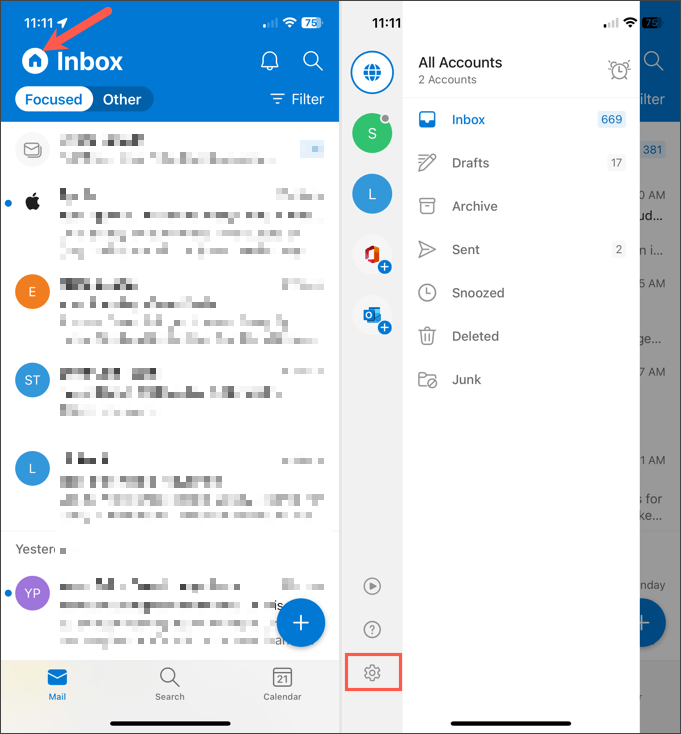 - Open the Outlook app on Android or iPhone and tap the Home icon on the top left.
