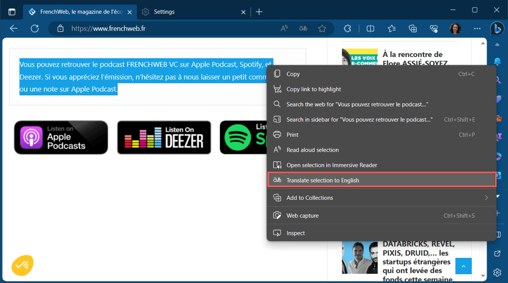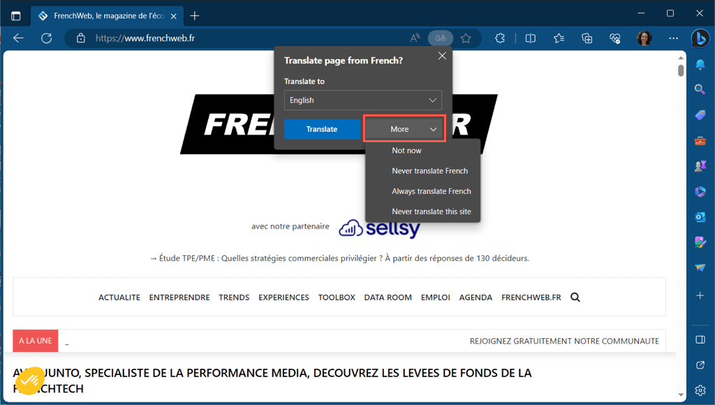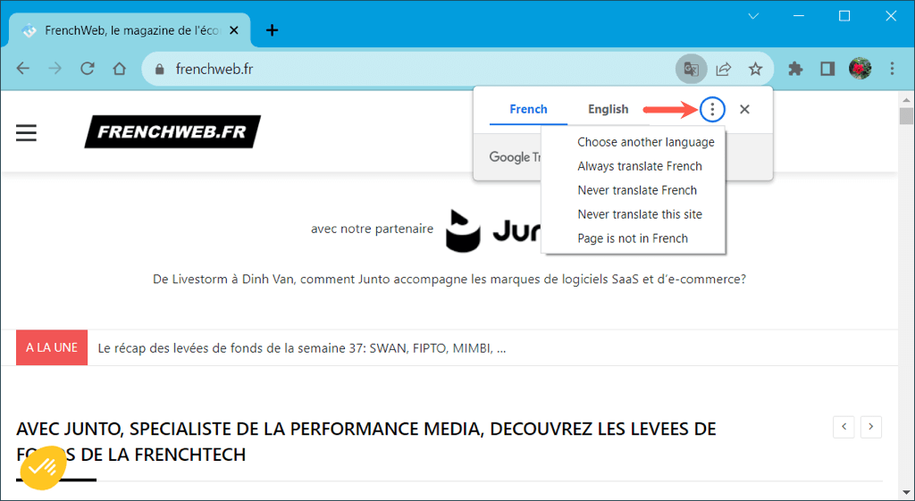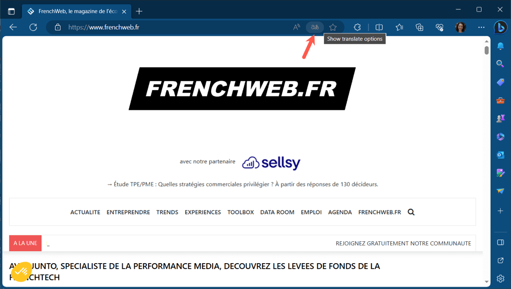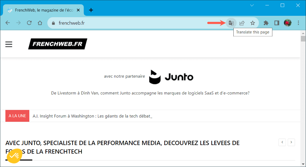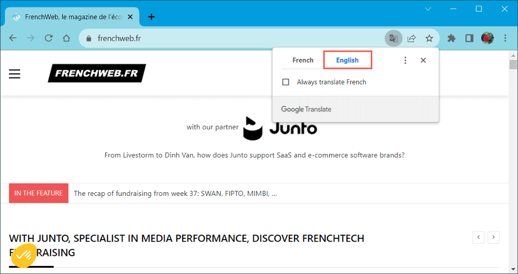 - Select the Translate icon and choose the translation language from your list of preferred options and you’ll then see the page update for you.