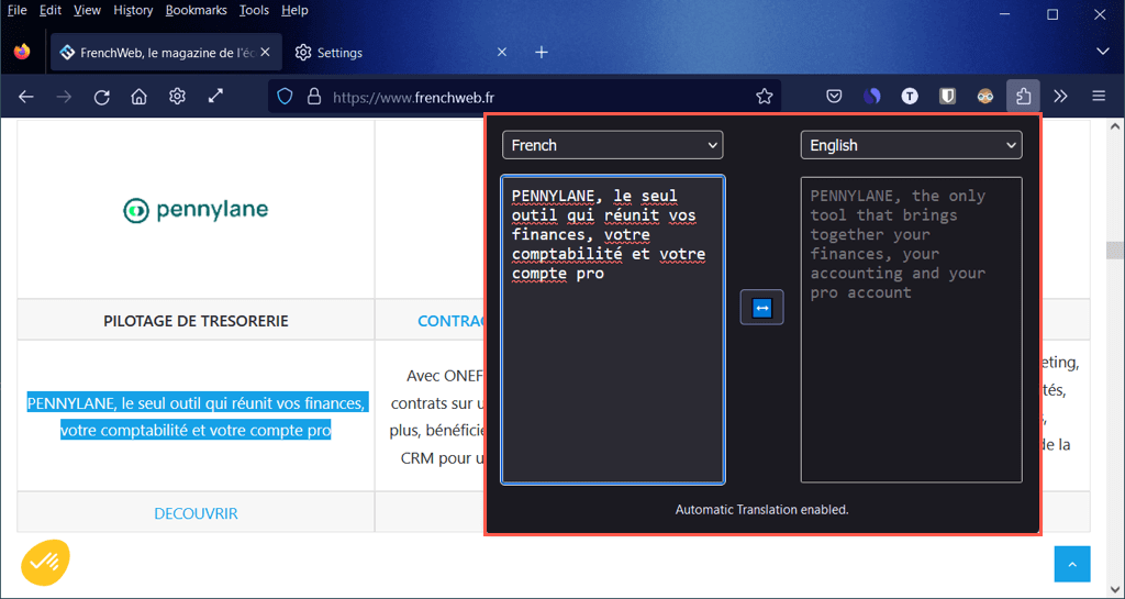 Maybe you only want to translate a portion of the selected text on the web page. With the Firefox Translations extension, it’s easy.
