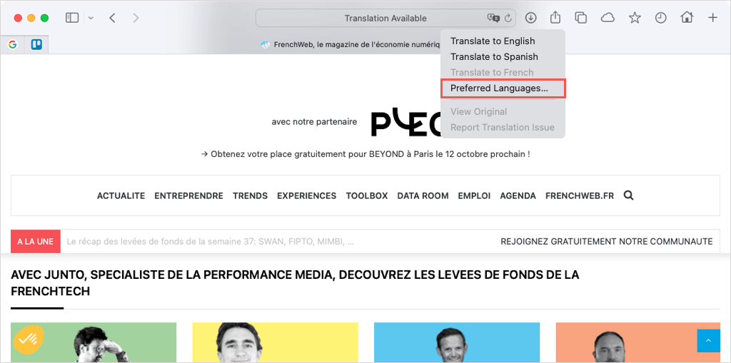 Another browser with its own translation feature is Apple’s Safari web browser.