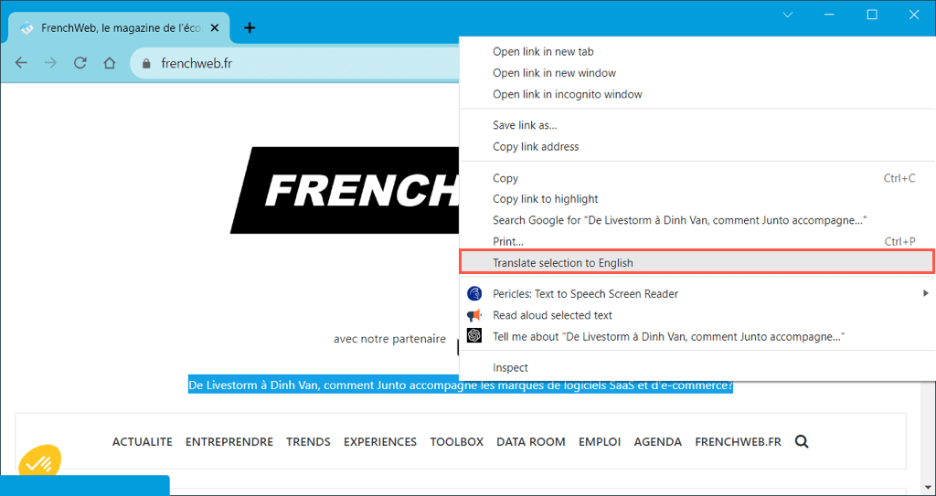 Once you install the free Translator extension, you can translate an entire web page or a specific portion quickly.