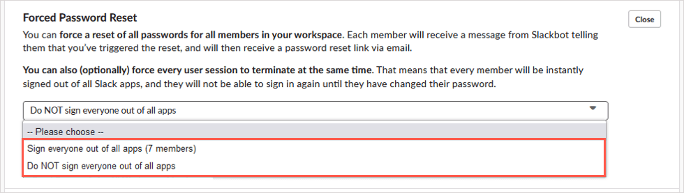 - Pick Force Reset and let everyone know they should receive an email with instructions to sign back into Slack.