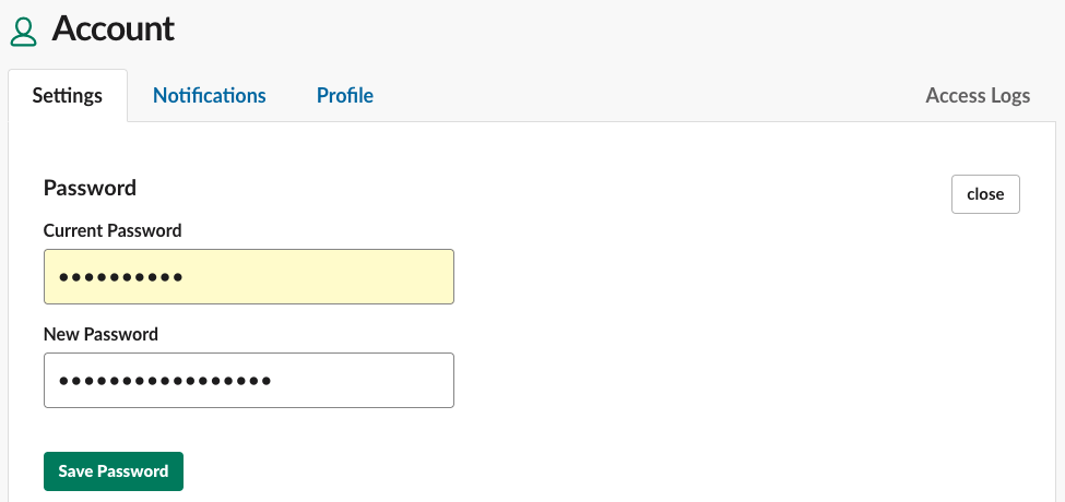 - Enter your Current Password, your New Password, and pick Save Password.