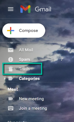 - Go to your Trash Folder found on the left menu navigation of your screen.