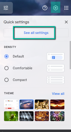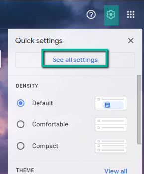 - On your Gmail inbox, click on the Settings icon found on the top-right side of your screen. Next, select See all settings.