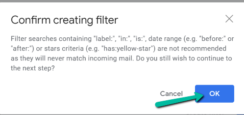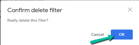 - A pop-up box will appear. Simply select OK, and Gmail will delete your filter.