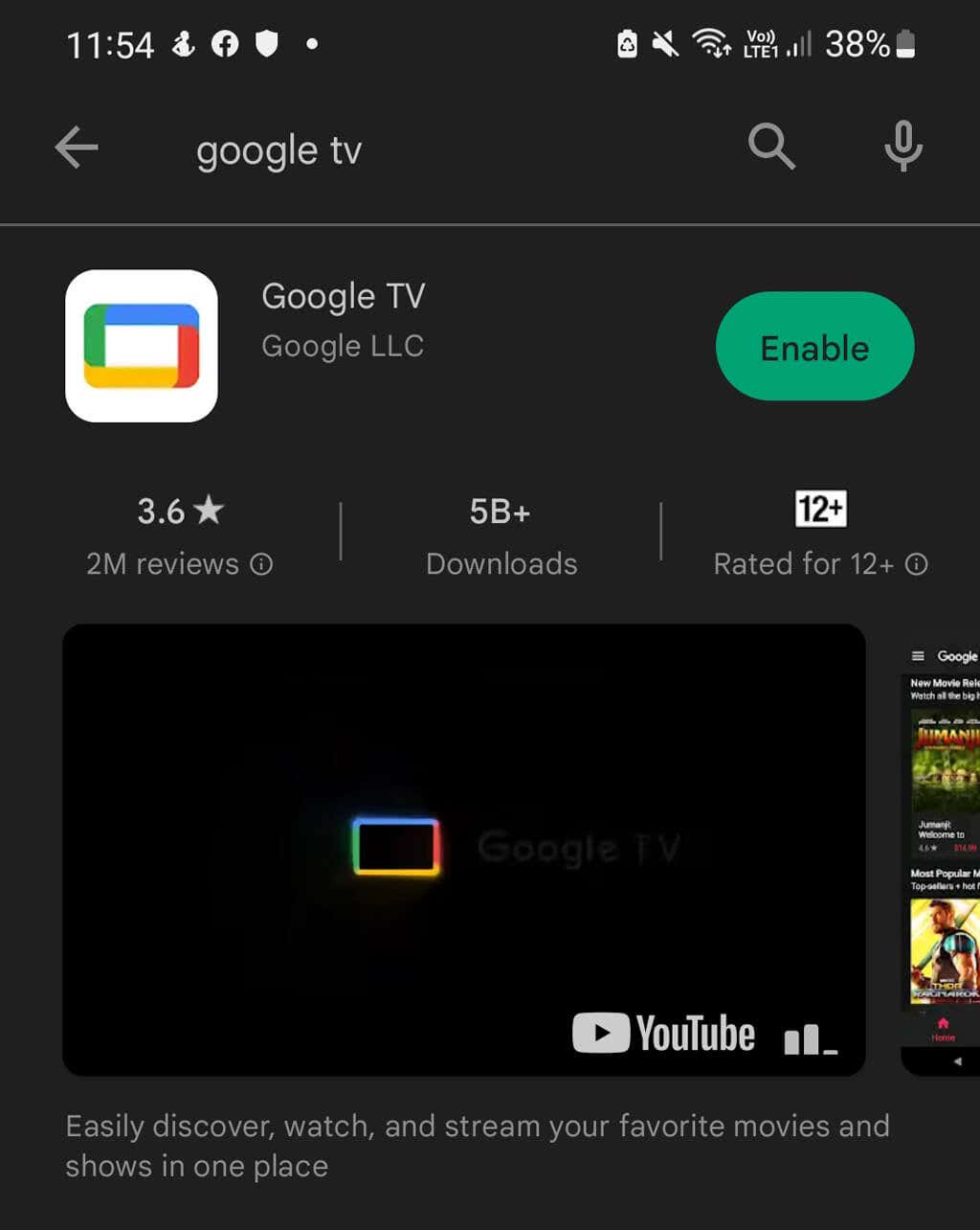 - On your Android phone or iPhone, head to the Google Play Store or Apple App Store and download the Google TV app.