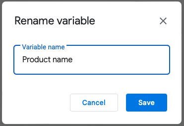 - Give your Variable a name in the subsequent pop-up window. You can also use the default naming convention, Variable 1, Variable 2, and so on. Select Create.