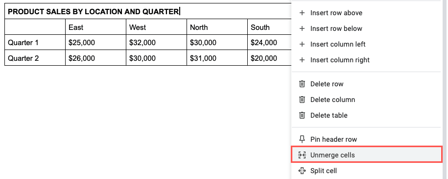 Unmerge Cells in Google Docs on the Web
