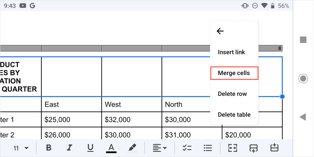 How to Merge Cells in Google Docs on Android
