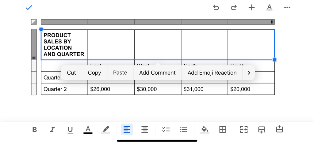 Similar to Android, you can merge cells in the Google Docs app on iPhone and iPad and can use one of two methods.