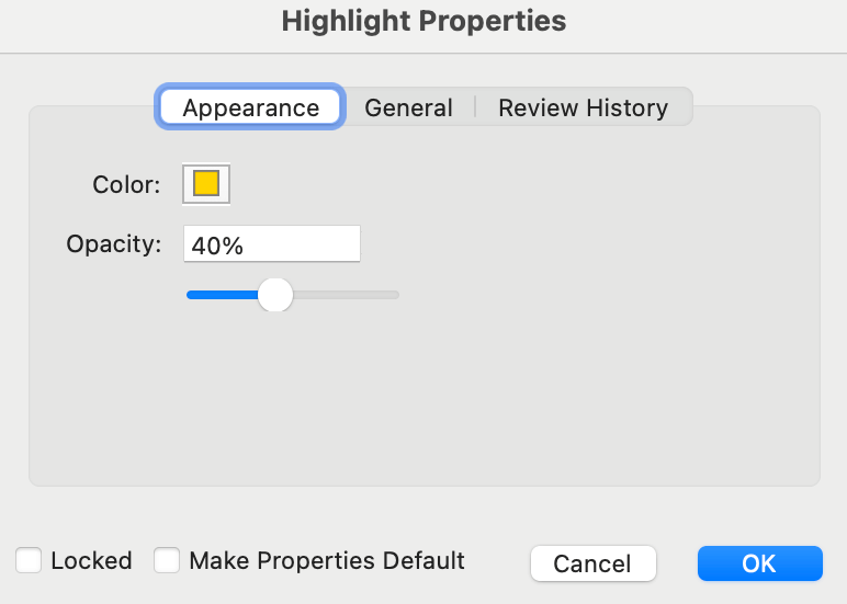 To make the new color the default color for all future edits, check the box labeled Make Properties default in the Highlight Properties window. This ensures that your chosen color becomes the default highlight color for future use.