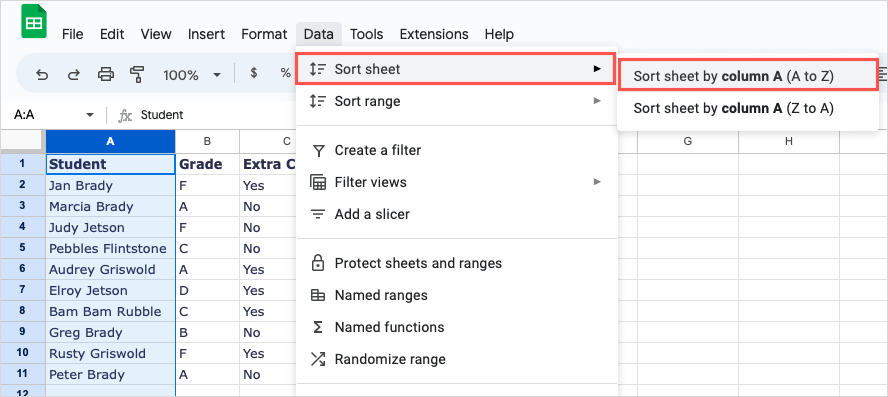 Sort Alphabetically in Google Sheets on the Web