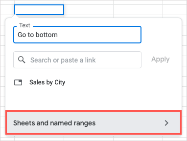 You’ll then see the linked text within the cell. Select the cell and use the link in the preview to head to the cell or cell range.